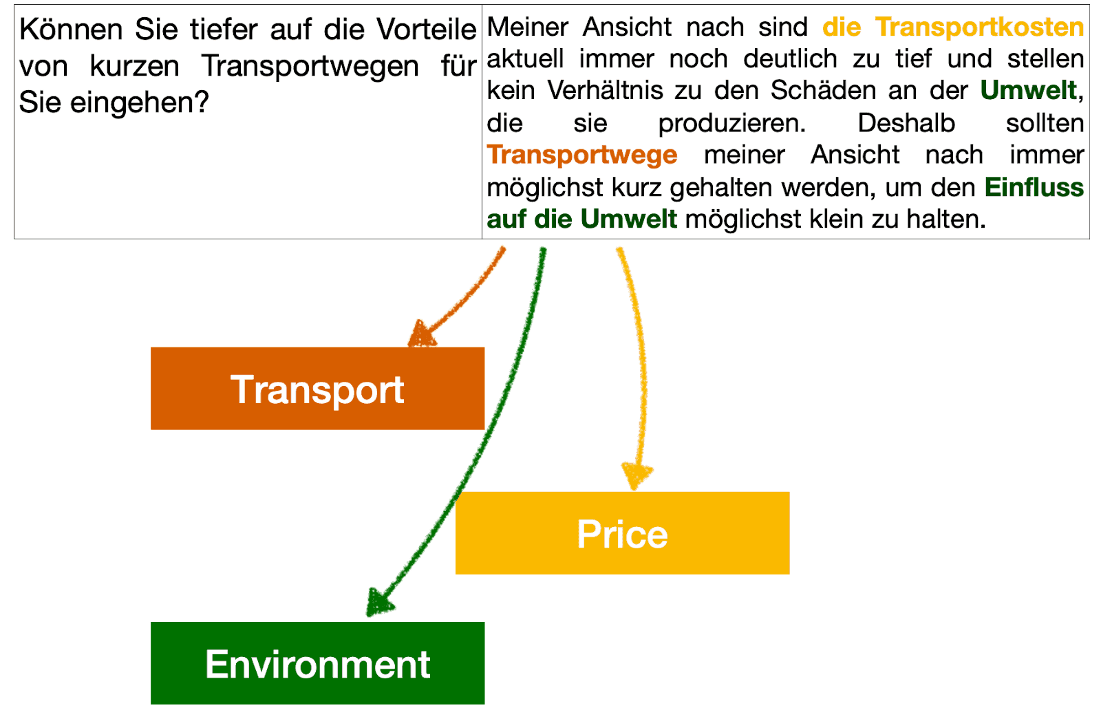 👤 Respondent: "Ich denke, am Geschmack erkennt man, ob ein Produkt schonend hergestellt ist, indem man auf die Umwelt Rücksicht nimmt. Dann hat es meist auch einen guten Geschmack. Es kann aber auch sein, dass ein Produkt konventionell hergestellt wurde und dennoch besser schmeckt als eines, das sogar nach Demeter-Standards produziert wurde. Aber meistens ist es so, dass wenn es schonend, gut und nachhaltig hergestellt wird, es auch einen besseren Geschmack hat."